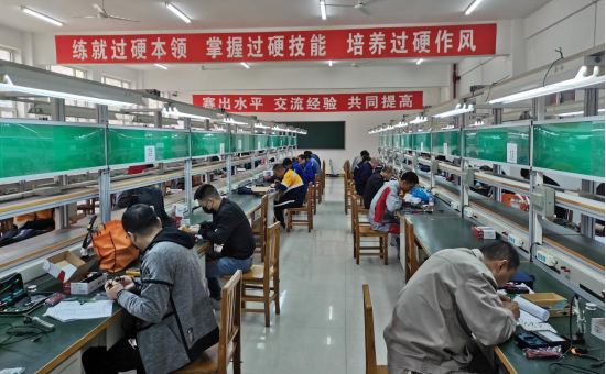 各参赛人员穿着工作服和绝缘鞋按号次走到工位上,熟练地操作螺丝刀、电烙铁、摄子、斜口钳等工具,比赛安静而激烈,选手们聚精会神、争分夺秒,出色地完成了参赛项目,体现出了良好的职业素质和过硬的技能水平。
